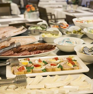 Our modern and stylish restaurant is the perfect place to begin your day after a restful night. We invite you to enjoy our delicious buffet breakfast. Whether you’re a tourist preparing for a day of exploring Budapest or a business traveler needing a hearty meal before work, our breakfast buffet is sure to meet your needs.